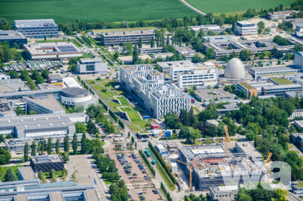 ![]() Rund um das Garchinger Atom-Ei und das Galileo, das 2021 eingeweihte neue Kongresszentrum (Bildmitte), gruppieren sich die verschiedensten Institute und deren Laboratorien | nnnnn |