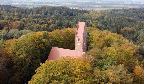 Hier hat die historisch sehr bewanderte Führerin Sabine Dauber mit Blick auf die wenigen Überreste der geschleiften Burg Wittelsbach und mit sehr lebendigen Schilderungen uns die Vorgeschichte nahe gebracht. ![]() Im Jahr 1119 war der Scheyerner Graf Otto V. von Scheyern in die Burg Wittelsbach (heute Oberwittels-bach) umgezogen. Sie nannten sich fortan „Wittelsbacher“. ![]() Diese Phase wurde durch die weniger bekannte tragische Verwicklung der Wittelsbacher in den Königsmord von Bamberg 1208 durch Otto von Wittelsbach beendet. Sie führte dazu, dass in der Folge die Burg Wittelsbach als Strafaktion geschleift wurde. ![]() Der Überlieferung nach ließ Herzog Ludwig I., der Kelheimer, nach der Zerstörung der Burg Wittelsbach eine Sühnekapelle errichten. Diese Kapelle wurde aus den Steinen der geschleiften Burg gebaut. Der heutige Bau der Kapelle ist ein spätgotischer Backsteinbau, der 1418 errichtet wurde. Im 16. Jahrhundert erhielten die Kapelle und der Turm ihre heutige imposante Form. ![]() (c) Drohnenaufnahme Cleemann ![]() In Oberwittelsbach befindet sich zudem ein neugotisches Nationaldenkmal, das an die Geschichte der Wittelsbacher erinnert. Dieses Denkmal befindet sich auf dem Burghügel, wo einst die Stammburg der Wittelsbacher, die Burg Wittelsbach, stand Das Nationaldenkmal wurde im Jahr 1834 errichtet, ein neugotisches Fialentürmchen, das als Symbol für die Bedeutung der Wittelsbacher in der bayerischen Geschichte dient. (c) DAHC Ihren Abschluss fand die Exkursion in Aichach, im Cafe Koch. ![]() Auf der Rückfahrt nach München waren neben den vielfältigen Eindrücken unserer Besichtigungen des Klosters Scheyern und Oberwittelsbach auch das tragische Schicksal des Pfarrers Peruschitz Gesprächsstoff: Er war 1912 mit der Titanic auf dem Weg in die USA, um dort eine Pfarrei zu übernehmen. Beim Untergang der Titanic hat er sich für Mitreisende geopfert. | ||